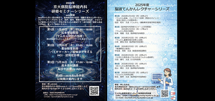脳神経内科研修セミナーシリーズ・脳波てんかんレクチャーシリーズの日程を更新いたしました。